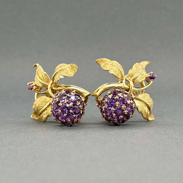 Estate 18K Y Gold 2.36ctw Amethyst Flower Clip On Earrings
