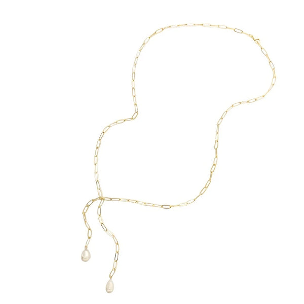 Brass YGP Baroque Pearl With Paperclip, Half Curb Chain Necklace