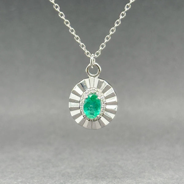 Estate 14K W Gold 0.66ct Emerald & 0.24ctw Diamond Pendant