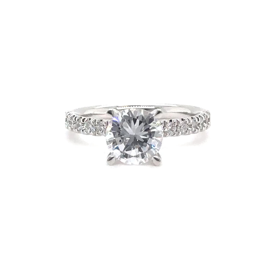 Indulge in luxury with this 14K white gold diamond mounting. Featuring 0.35ctw of G/SI2 quality diamonds, this mounting exudes sophistication and exclusivity. Elevate your style and make a statement with this stunning piece. Made to fit a 1.50ct round diamond.