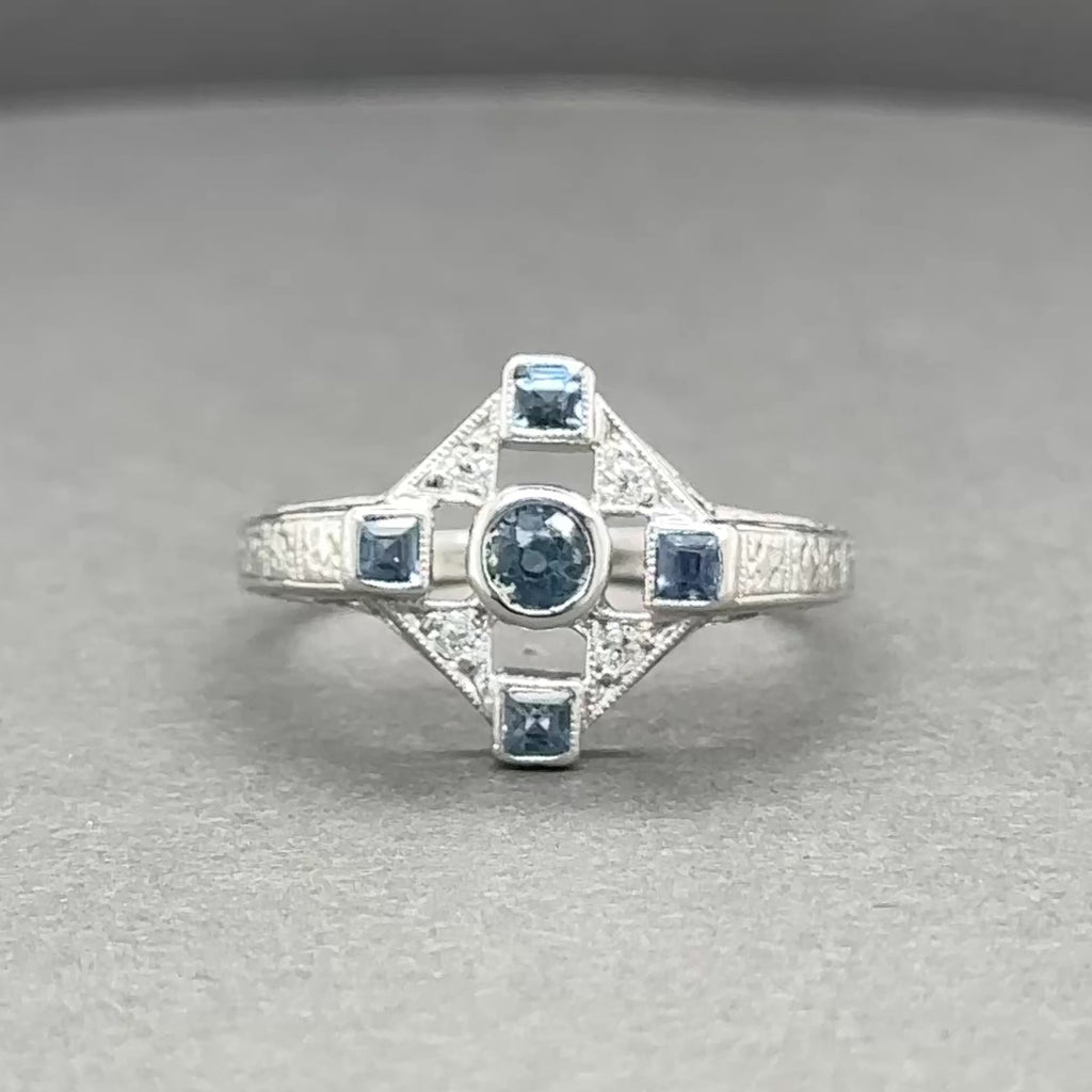 6 round & square cut sapphires, blue color, heated, slightly-moderately included, bezel set, 0.47ctw