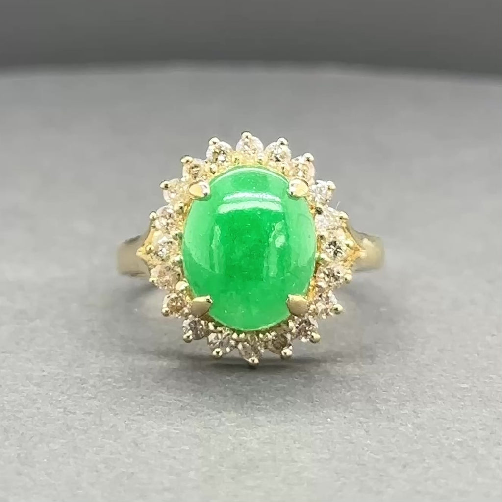 Estate 14K Y Gold 1.86ct Jade & Diamond Ring