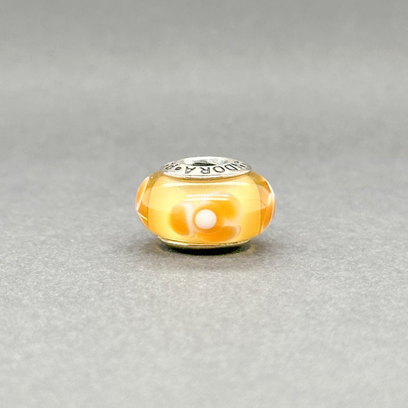 Estate Pandora SS Orange Flower Glass Bead Charm