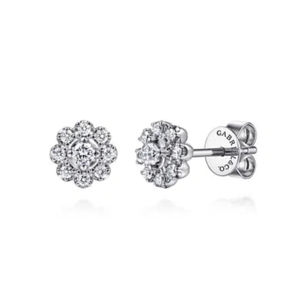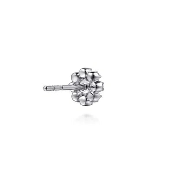 SS 0.03ctw Diamond Beaded Frame Flower Dia Cut Stud Earrings