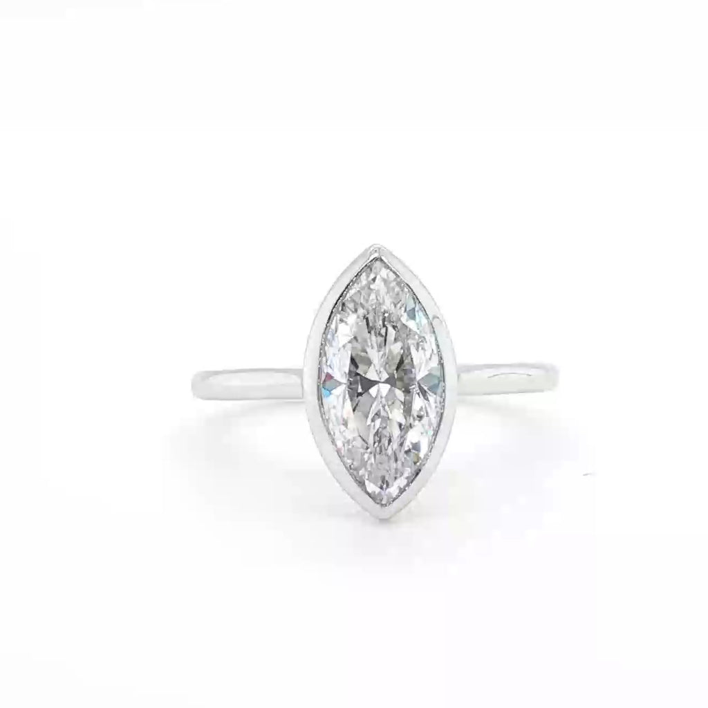 Crafted in elegant 14K white gold, this marquise-shaped bezel setting offers a refined frame that highlights the gemstone with timeless sophistication. Its secure design ensures your stone is beautifully showcased while providing lasting durability, making it a perfect choice for a classic and elegant jewelry piece.