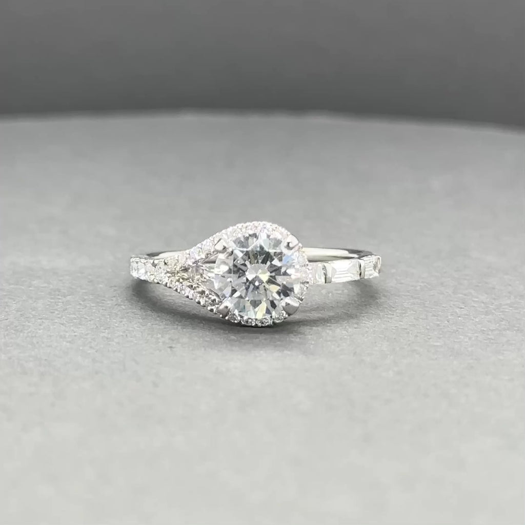 Indulge in sophistication with our Estate 14K Gold Diamond Mounting Ring. This exquisite piece features a stunning combination of 14k white gold and 31 round and baguette cut diamonds for a total of 0.50ctw. With a size 7 and the ability to be sized, it will fit a 6.5mm round stone or a 1ct round diamond, making it a versatile and timeless addition to any collection.