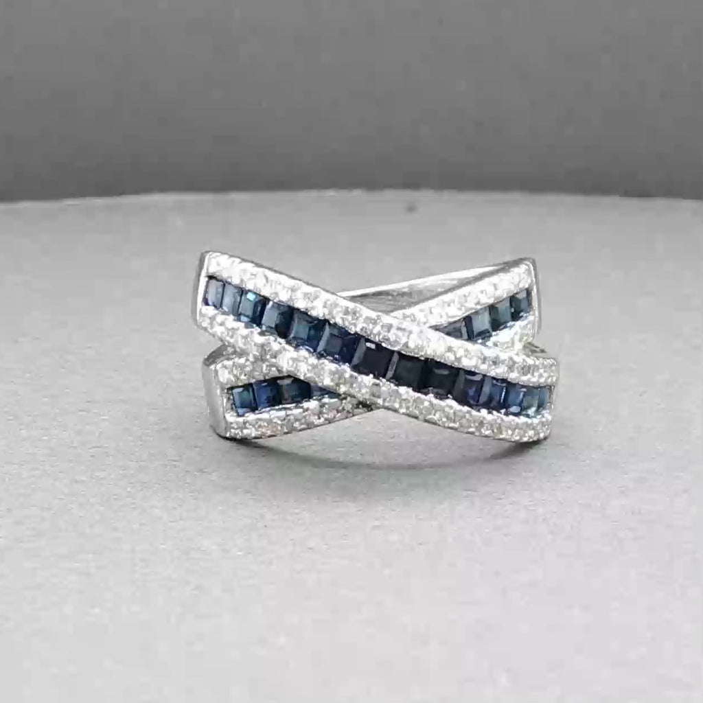 Estate 14K W Gold 1.04ctw Sapphire & 0.28ctw Diamond X Ring