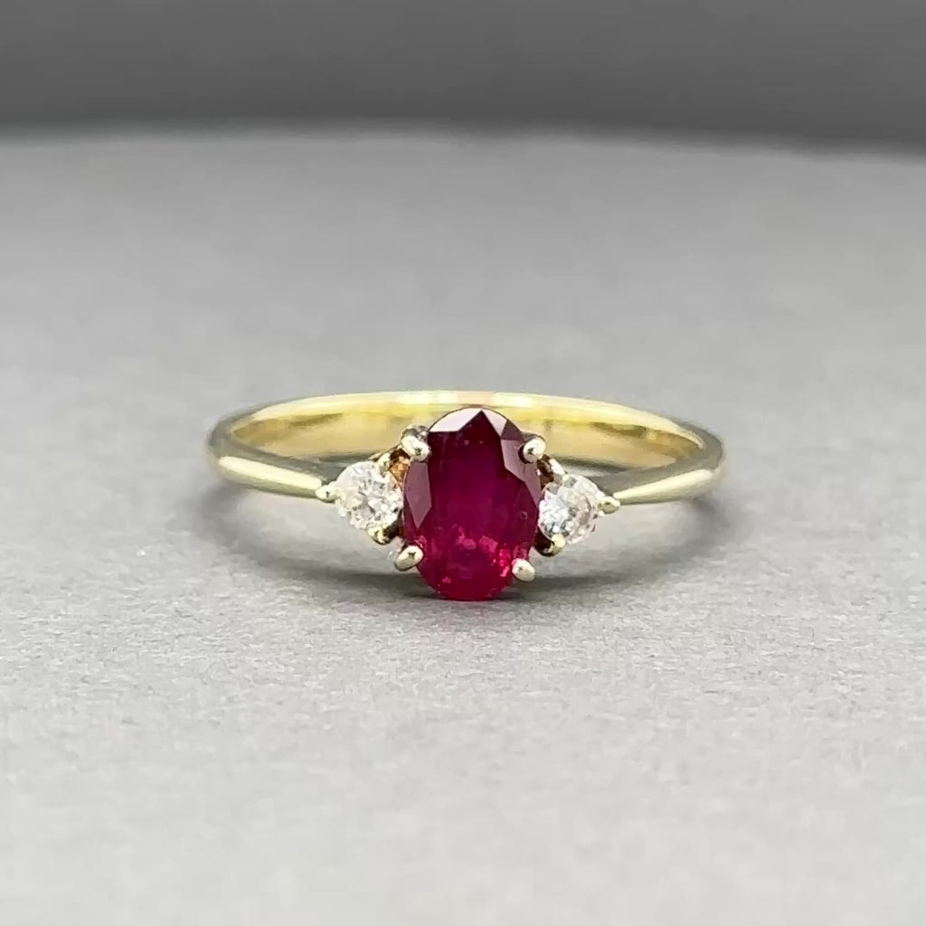 1 oval cut ruby, red color, heavily included, heated, prong set, 0.69ct