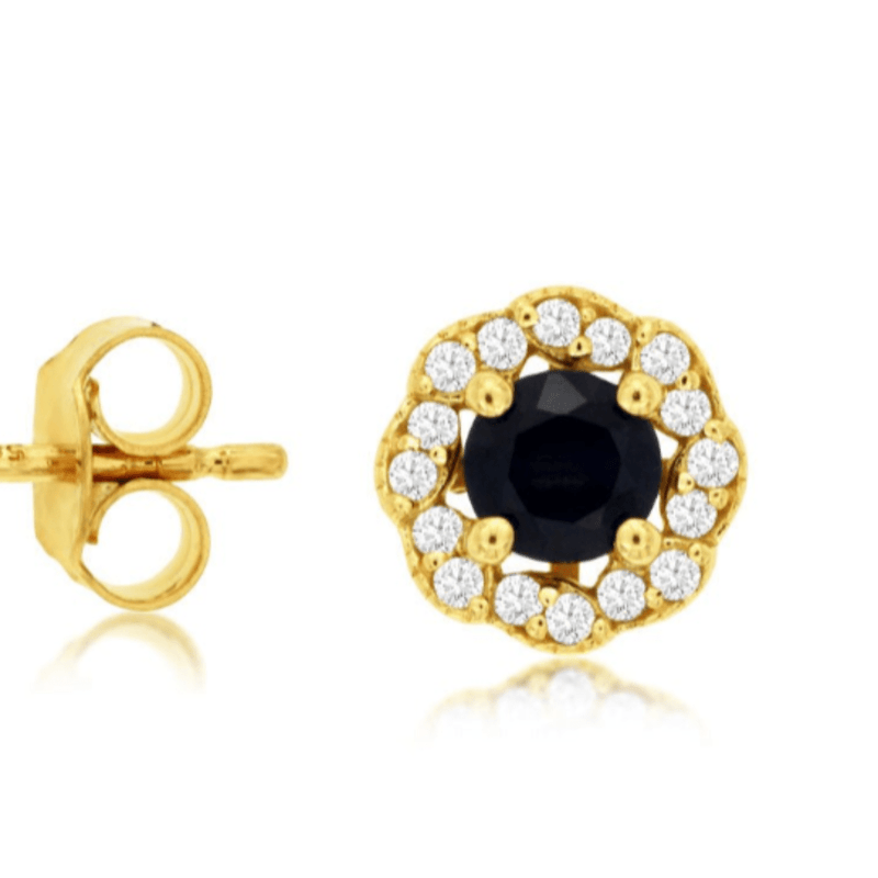 These exquisite round halo earrings feature a stunning 0.90-carat sapphire center surrounded by 0.20-carats of diamonds. Crafted in 14K yellow gold, these earrings are the perfect combination of elegance and sophistication. Their heirloom quality makes them an ideal choice for any special occasion.
