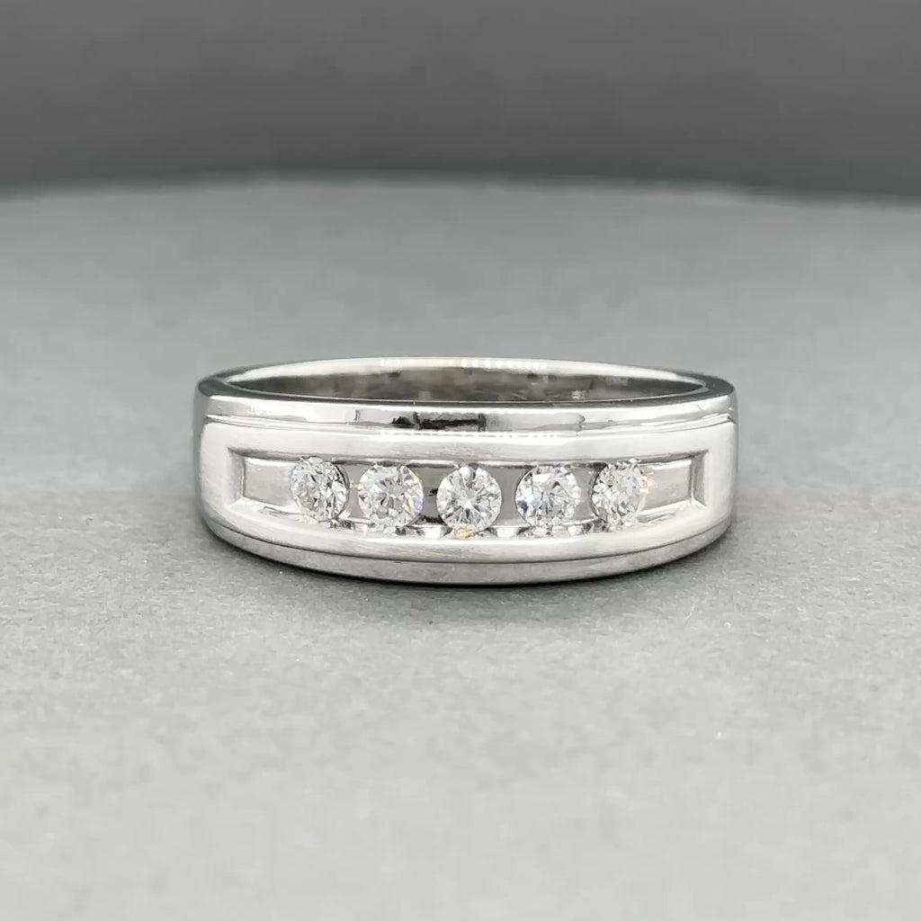 Experience luxury and sophistication with our Estate 10K Gold 0.42ctw H/I1 Diamond Men’s Ring. Crafted from 10k white gold, this exclusive piece features 5 round diamonds with a total weight of 0.42ctw. Measuring 8.00mm wide at the top and 4.20mm wide at the band, this ring is available in size 13 and can be sized. Make a statement with this exquisite, 4.70dwt ring.