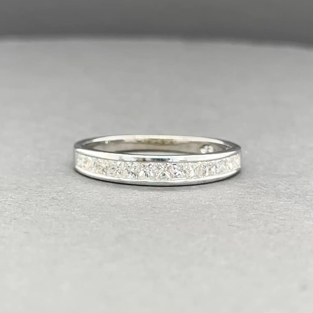 This elegant estate anniversary ring features 13 princess-cut diamonds totaling 0.40 carats, set in 14k white gold. The diamonds, graded G color with VS2-SI1 clarity, are channel set to create a refined sparkle. Measuring 3.20mm wide at the top and tapering to 1.60mm at the band, this size 5.25 ring can be resized for a perfect fit. Weighing 1.06 dwt, it combines timeless design with exceptional craftsmanship, making it a sophisticated symbol of lasting commitment.