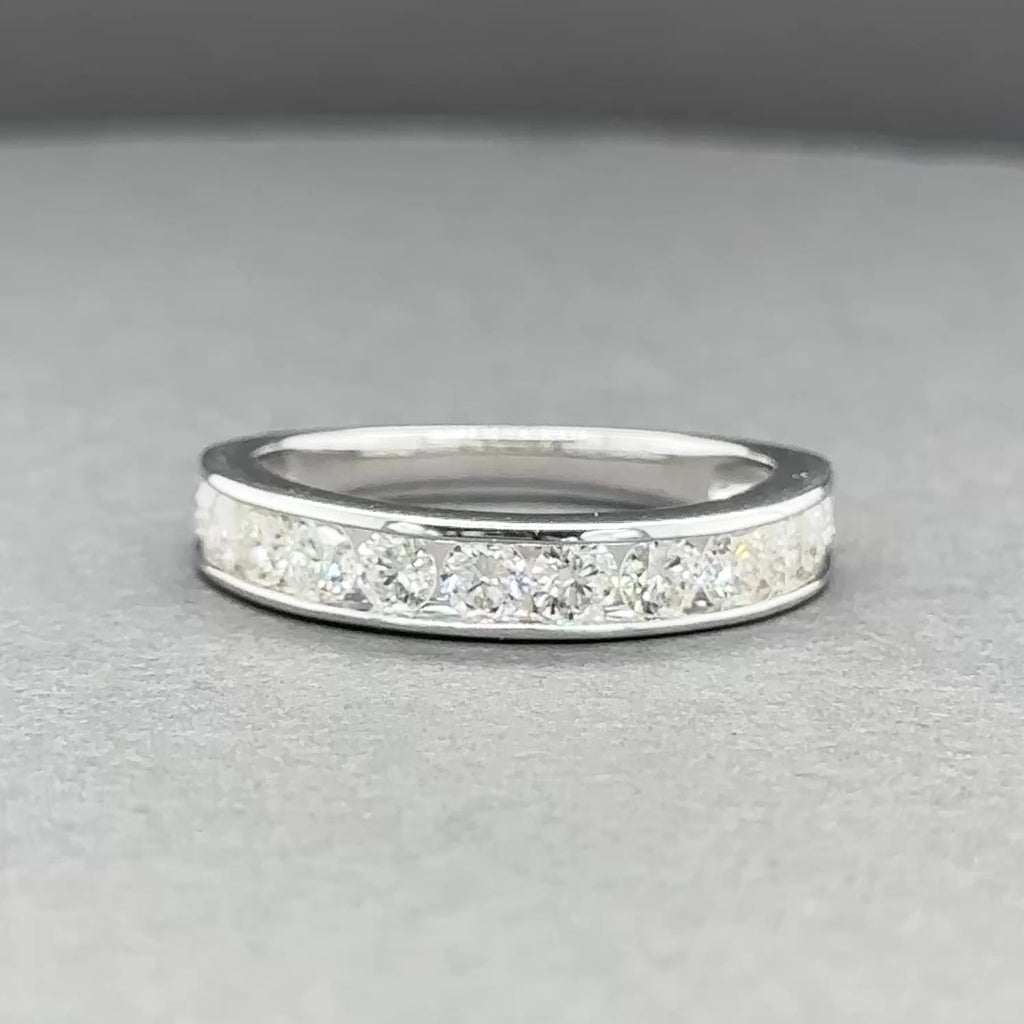 Crafted in elegant 14k white gold, this anniversary ring features 12 round-cut diamonds totaling 1.05 carats, with H-I color and SI1-2 clarity, channel set for a seamless sparkle. Measuring 3.90mm at the top and tapering to 3.50mm at the band, it offers a refined silhouette. Sized at 7.25 and adjustable for a perfect fit, this 1.90 dwt ring combines timeless beauty with lasting comfort.