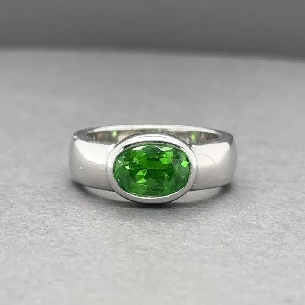 1 oval cut garnet, green color, moderately included, bezel set, 1.61ct
