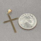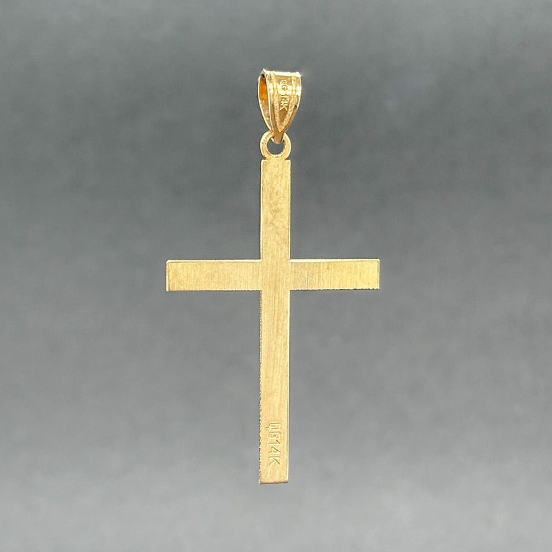 Indulge in the opulence of our Estate 14K Gold Cross Pendant. Crafted from luxurious 14k yellow gold, this pendant features a high polished front and a satin finish back, adding depth and sophistication. Measuring 31.90mm x 20.20mm and with a bale inner diameter of 3.7mm, this piece is a perfect addition to any fine jewelry collection. Weighing 0.43dwt, it is lightweight and comfortable to wear. Elevate your style with this exquisite pendant.