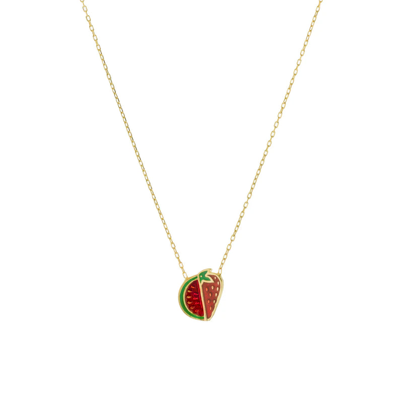 Add some sweet charm to your look with this Yellow Gold Plated Sterling Enamel Strawberry Pendant. It's the perfect sidekick for your everyday looks, made with enamel for a pop of flavor without the sugar rush! Make some fruit-based fashion statements - this pendant is sure to bring the (berry) best out in your wardrobe.